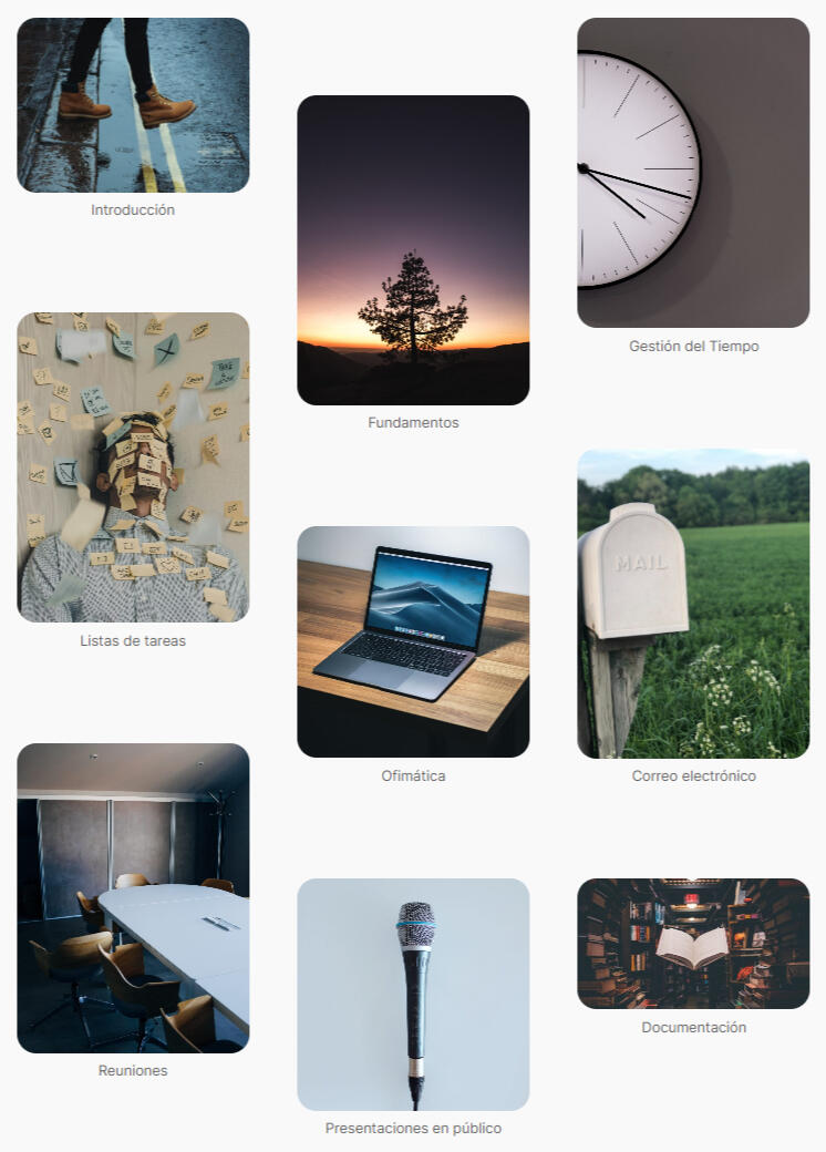 Pinterestividad te ayudará a mejorar tus conocimientos y capacidades en temas clave para prosperar en el ámbito profesional.Hablaremos de gestión del tiempo, listas de tareas, ofimática (¡muy importante!), reuniones o hablar en público, entre otras cosas.